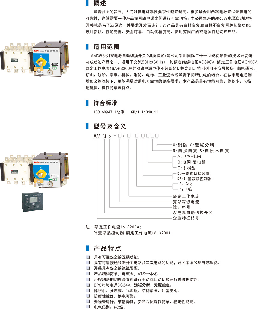 AMQ3雙電源自動切換開關(guān)